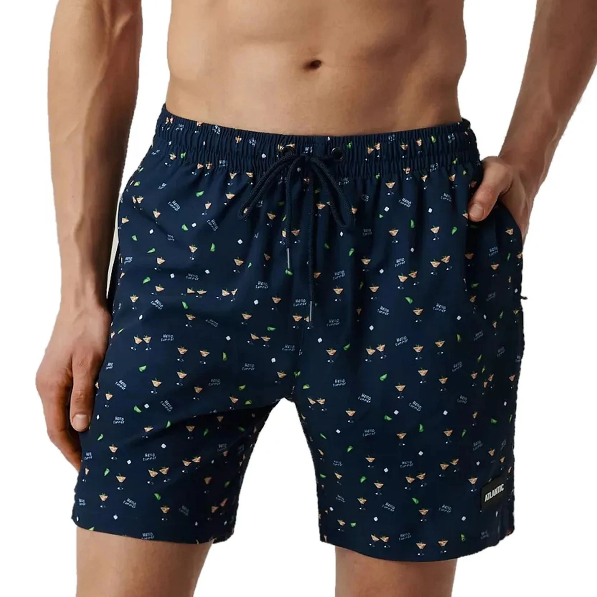 Pánske plavky 221 blue Atlantic - tmavomodrá farba - so vzorom - materiál so 4-cestnou strečovou technológiou - pás so šnúrkou na stiahnutie - vrecká na bokoch - rýchloschnúci materiálZloženie materiálu: 100% polyester