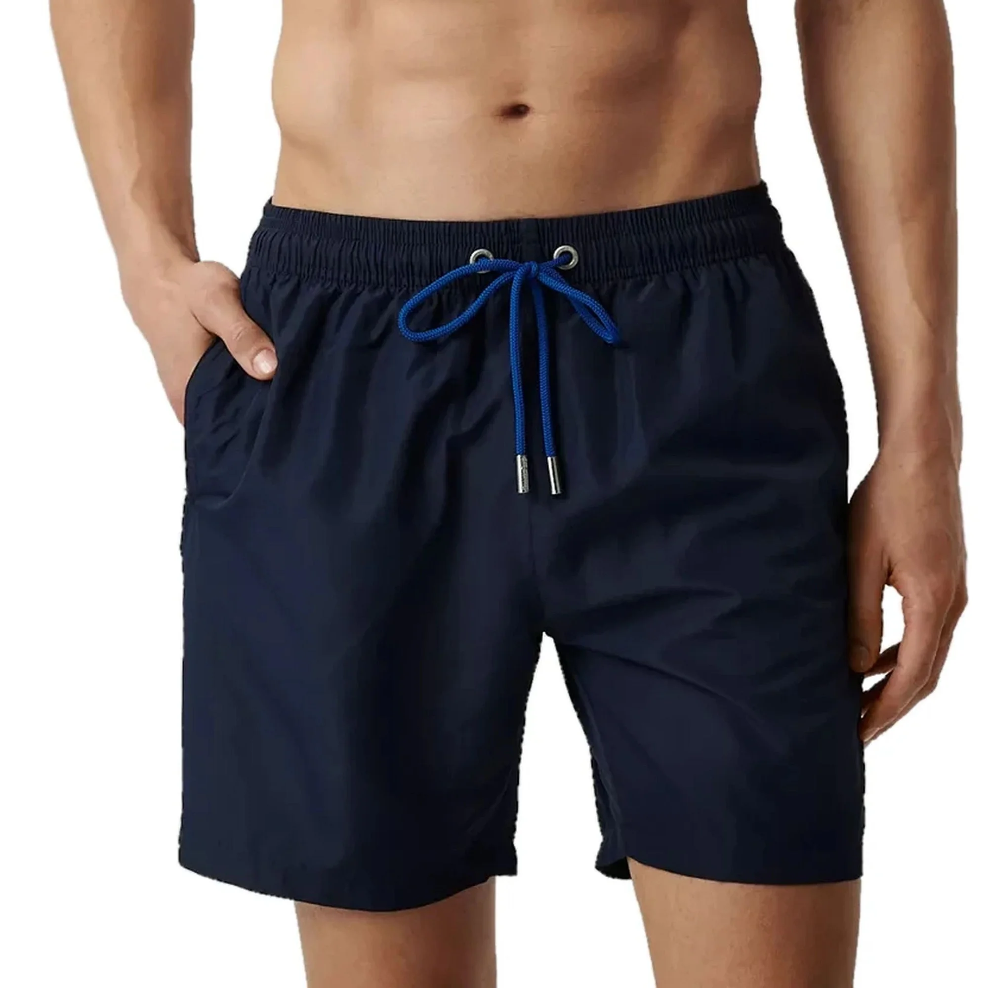 Pánske plavky 223 dark blue Atlantic - tmavomodré - šnúrka v páse v kontrastnej farbe - vrecká na bokoch - rýchloschnúci materiálZloženie materiálu: 100% polyester