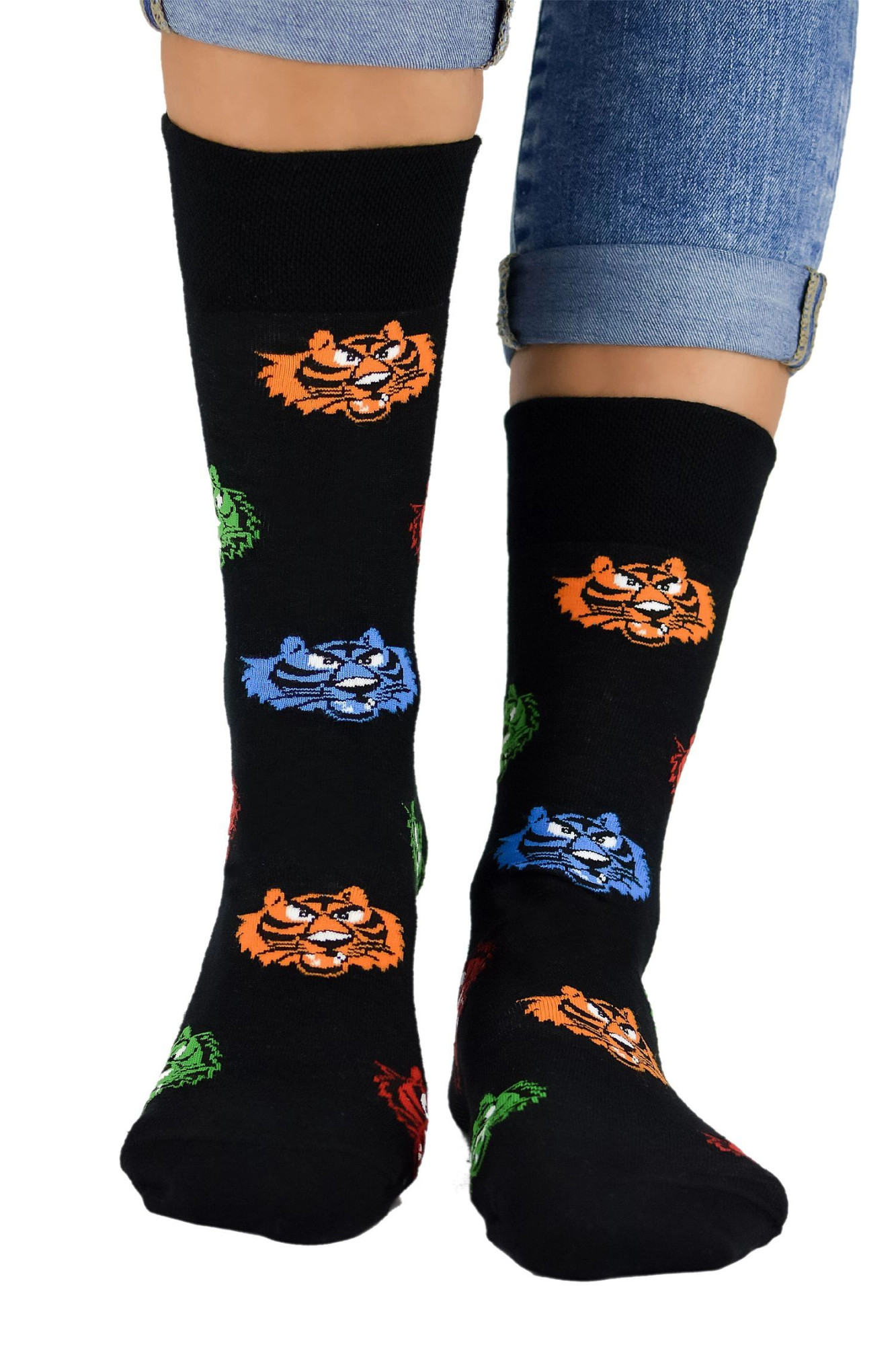 Pánske ponožky 002 U 15 NOVITI - čierne - vyrobené z kvalitnej bavlny - so vzorom - netlačia Zloženie materiálu: 80% bavlna + 18% polyamid + 2% elastan