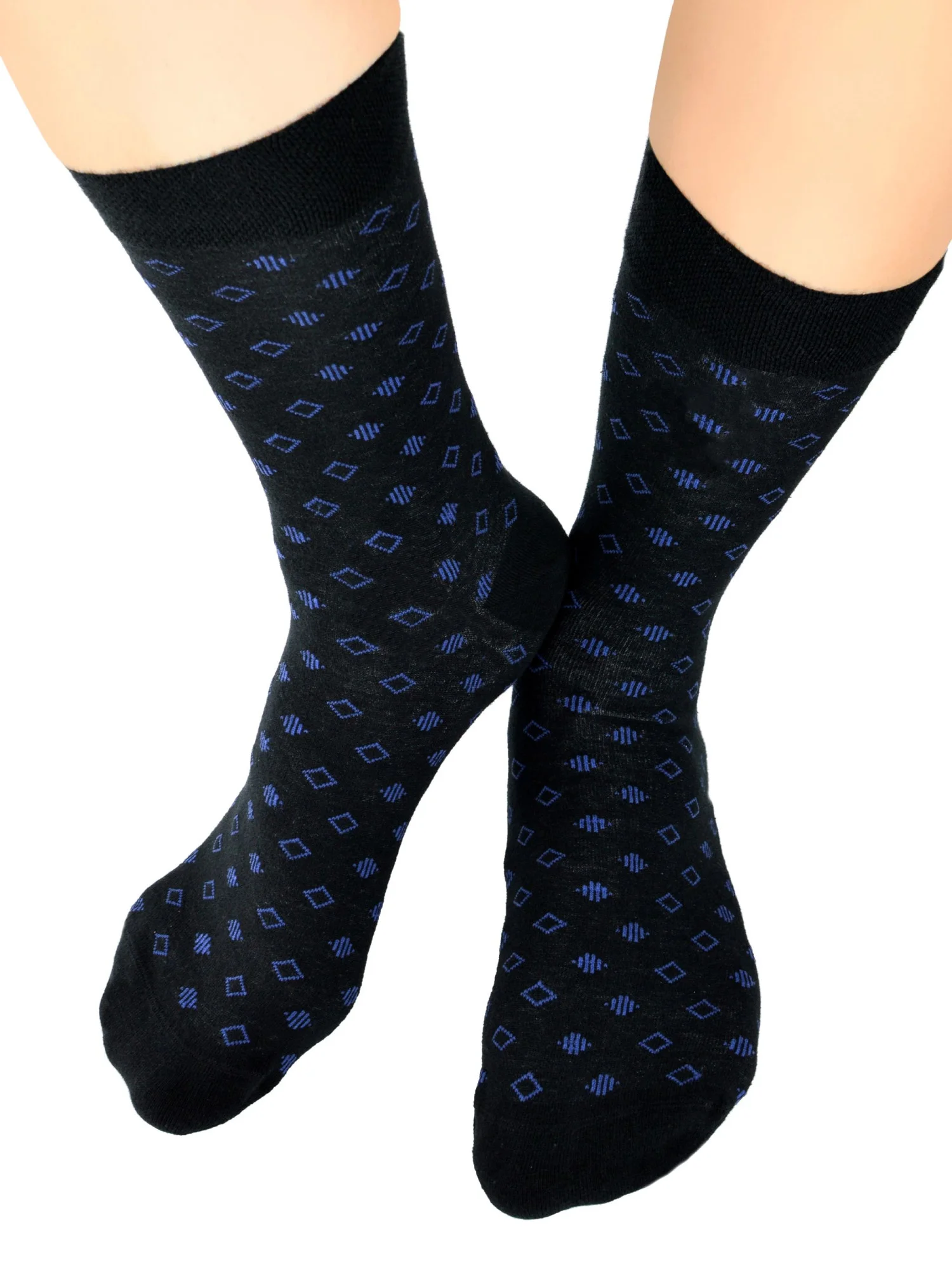 Pánske ponožky 006 M10 NOVITI - čierne - vyrobené z kvalitnej bavlny - so vzorom - ploché švy - netlačiaca manžeta pre maximálny komfort a pohodlie - univerzálna dĺžka - vhodné k oblekom a elegantnej obuviZloženie materiálu: 80% bavlna + 18% polyamid + 2% elastan