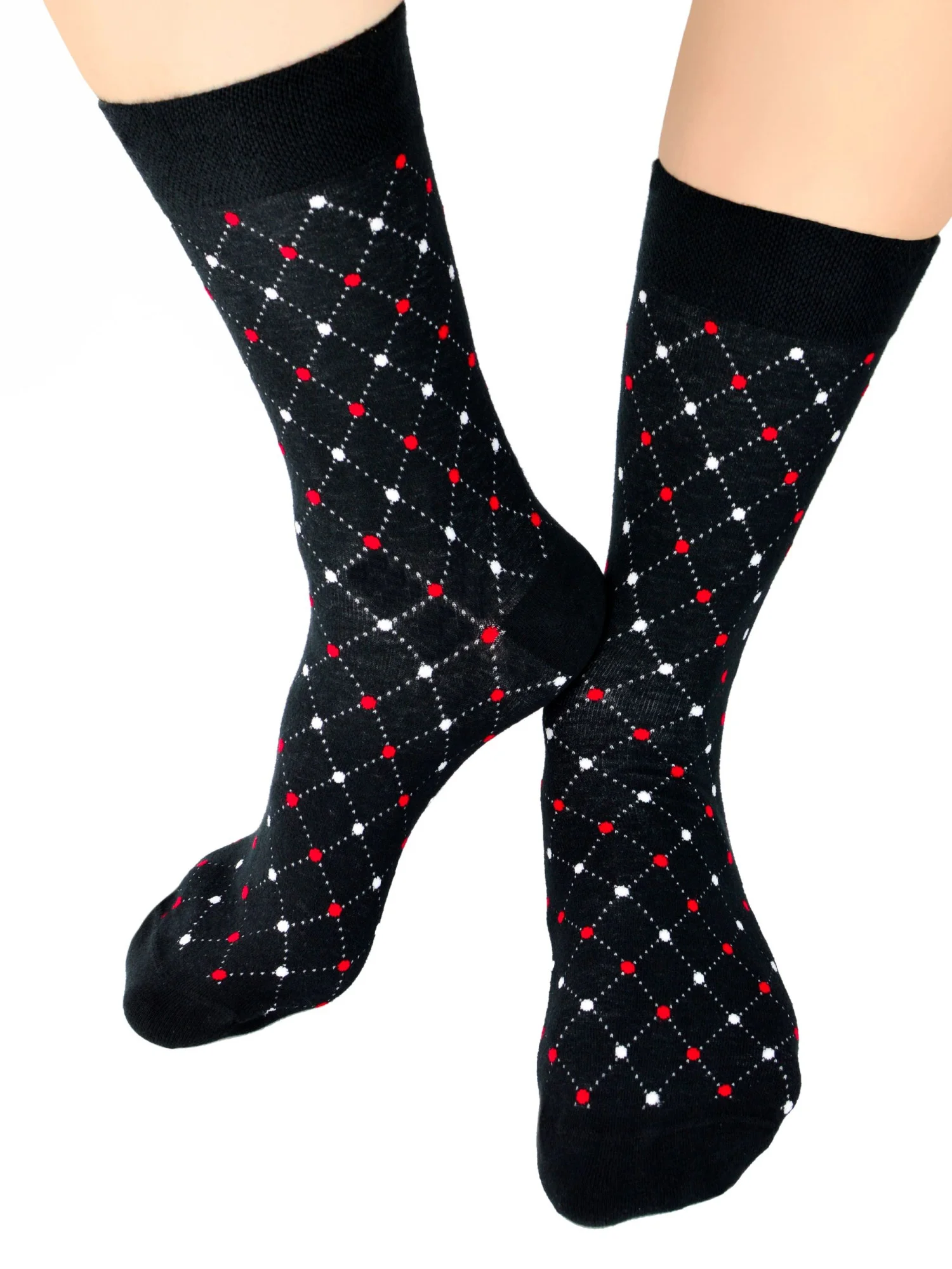 Pánske ponožky 006 M12 NOVITI - čierne - vyrobené z kvalitnej bavlny - so vzorom - ploché švy - netlačiaca manžeta pre maximálny komfort a pohodlie - univerzálna dĺžka - vhodné k oblekom a elegantnej obuviZloženie materiálu: 80% bavlna + 18% polyamid + 2% elastan