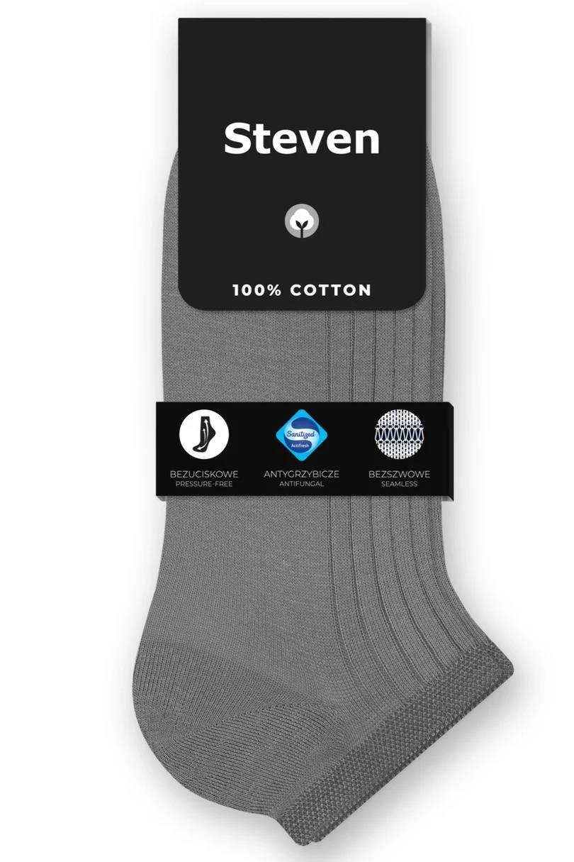 Hladké pánske ponožky, ktoré sú vyrobené z bavlny (100%). Ponožky sú vyrobené z veľmi kvalitnej bavlny SANITIZED, ktorá znižuje bakteriálnu a mykotickú aktivitu a ktorá neutralizuje nepríjemný zápach. Model má lem, ktorý pri nosení netlačia. Ponožky sú vďaka bezšvovej technológii pohodlné a komfortné. Model je mäkký, pohodlný a je vhodný na každodenné nosenie.