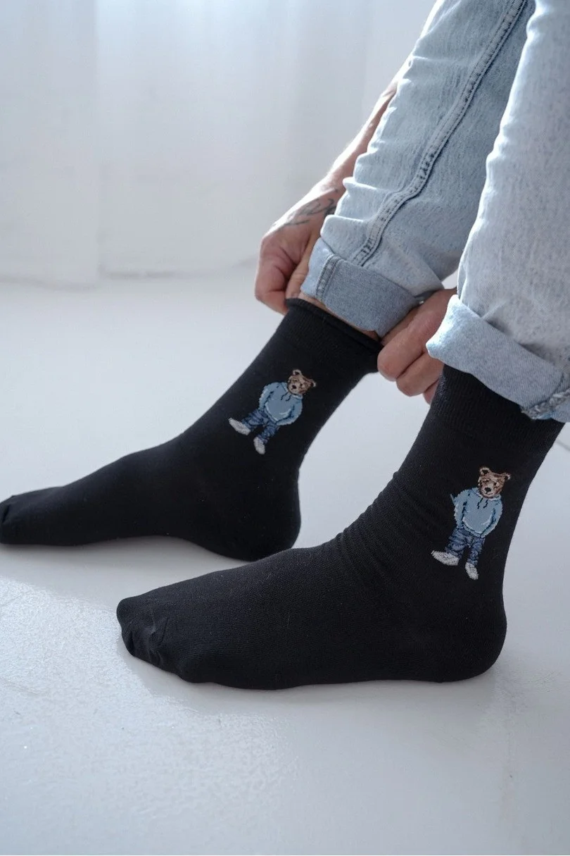 Dodajte svojmu šatníku nádych humoru a pohodlia s pánskymi ponožkami AVANGARD MISIEK! Tento jedinečný model od značky MILENA má rozkošný vzor medvedíka v modrej teplákovine, ktorý dodá charakter každému outfitu. Sú vyrobené z kvalitnej bavlny (75 %) s prídavkom elastanu (5 %) a polyamidu (20 %), vďaka čomu perfektne sedia, sú priedušné a odolné. Sú ideálnou voľbou na každodenné nosenie alebo ako darček pre tých, ktorí majú radi netradičné doplnky!