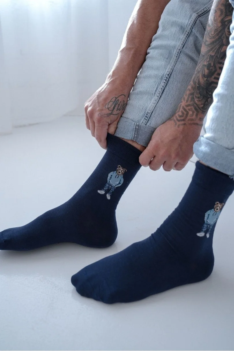 Domov Oblečenie a móda Pánske oblečenie Pánska spodná bielizeň Boxerky, trenky, slipy, tangá PÁNSKE PONOŽKY AVANTGARDNÝ MEDVEDÍK V MODREJ MIKINE 0125.109 tmavě modrá 43-46