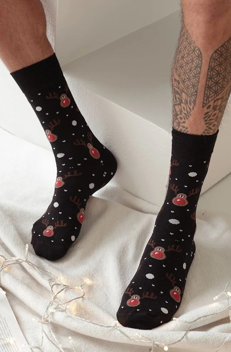 Farebné pánske ponožky - vysokokvalitná bavlna - zdobené vianočným motívom - ideálne ako darček Zloženie: 75 % bavlna, 20 % polyamid, 5 % elastan