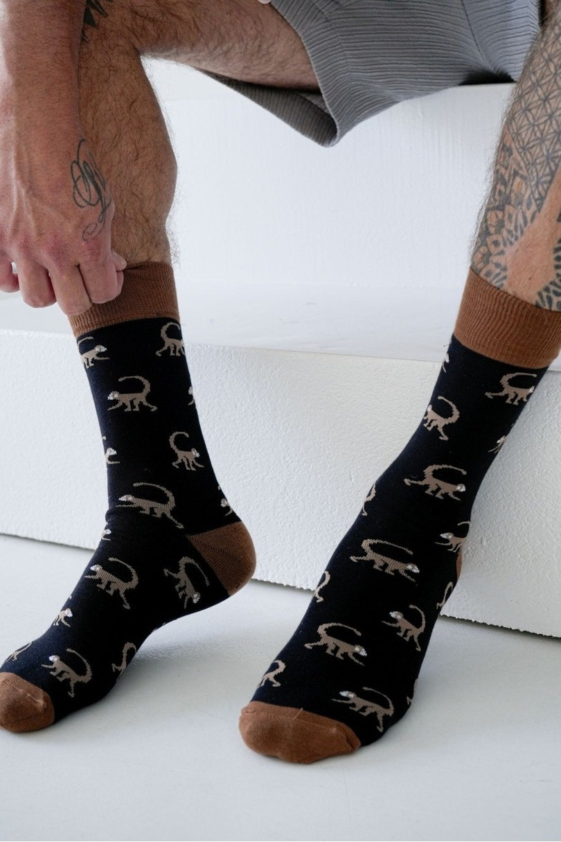 Pánske ponožky Pánske ponožky sú skvelou voľbou pre mužov so zmyslom pre humor a odstupom. Vyrovná sa im originálny, vtipný vzor, ktorý dodá charakter každému oblečeniu. Sú vyrobené z kvalitnej bavlny s prídavkom polyamidu a elastanu, zaručujú mäkkosť, priedušnosť a perfektne sedia. Budú perfektné v práci aj počas voľného času - všade tam, kde záleží na pohodlí a štýle..
