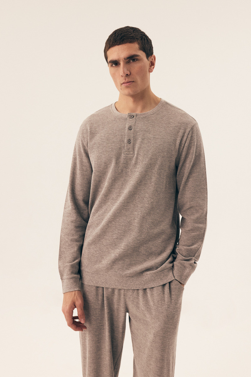 Objavte pohodlie a štýl s pánskym pyžamom Henderson Desert 42638 SS25. Toto pyžamo s dlhým rukávom je vyrobené z vysokokvalitných materiálov, je pohodlné a priedušné počas celej noci a má praktické rebrované manžety pre dokonalé prispôsobenie. Vďaka klasickému strihu a modernému dizajnu je toto pyžamo ideálne na každodenné nosenie, ako aj na chladnejšie noci. Materiálové zloženie: 100 % bavlna