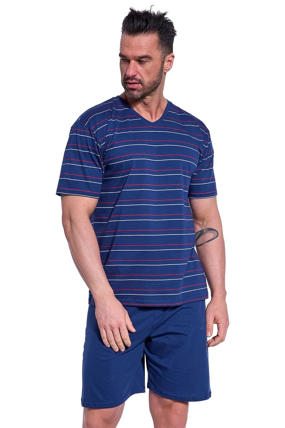 Pánske pyžamo 330/48 Various CORNETTE - tmavomodré - vyrobené z kvalitnej bavlny - pruhované tričko s krátkym rukávom - jednofarebné šortkyZloženie materiálu: 100% bavlna Veľkosti pre mužov S M L XL XXL 3XL 4XL 5XL Obvod hrudníka (cm) 92-96 cm 96-100cm 100-104cm 104-108cm 108-112cm 112-116cm 116-122cm 122-128cm Obvod pása (cm) 82-86cm 86-90cm 90-94cm 94-98cm 98-102cm 102-106cm 106-112cm 112-118cm Výška (cm) 164-170cm 170-176cm 176-182cm 182-188cm 188-194cm 188-194cm 188-194cm 188-194cm Veľkosti pre ženy S M L XL XXL 3XL 4XL 5XL Obvod hrudníka (cm) 88-92 cm 92-96cm 96-100cm 100-104cm 104-108cm 108-112cm 112-118cm 118-124cm Obvod pása (cm) 72-76cm 76-80cm 80-84cm 84-88cm 88-92cm 92-96cm 96-102cm 102-108cm Obvod bokov (cm) 92-96cm 96-100cm 100-104cm 104-108cm 108-112cm 112-116cm 116-122cm 122-128cm Výška (cm) 158-164cm 164-170cm 164-170cm 170-176cm 176-182cm 176-182cm 176-182cm 176-182cm Detské veľkosti (roky) 2-3 3-4 5-6 7-8 9-10 11-12 13-14 Obvod hrudníka (cm) 50-54 cm 54-58cm 58-62cm 62-66cm 66-72cm 72-80cm 80-88cm Obvod pása (cm) 48-52cm 50-54cm 52-56cm 54-58cm 56-62cm 60-68cm 64-72cm Výška (cm) 86-92cm 98-104cm 110-116cm 122-128cm 134-140cm 146-152cm 158-164cm