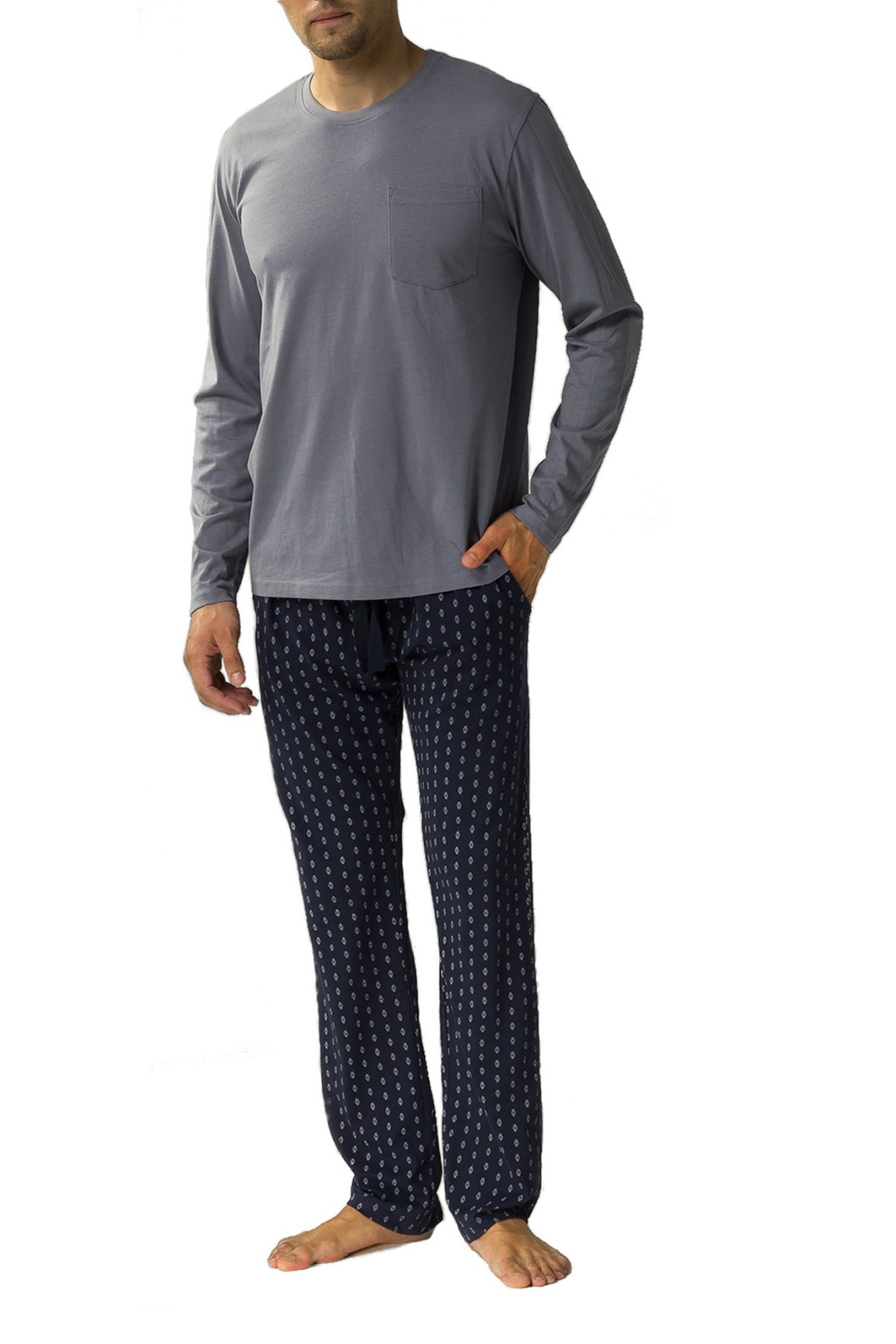Pánske pyžamo 373 Atlantic - vyrobené z kvalitnej bavlny - sivé tričko s dlhými rukávmi - vrecko na prednej strane - dlhé modré vzorované nohavice s vreckami - nastaviteľný pás na šnúrku Zloženie materiálu: 100% bavlna
