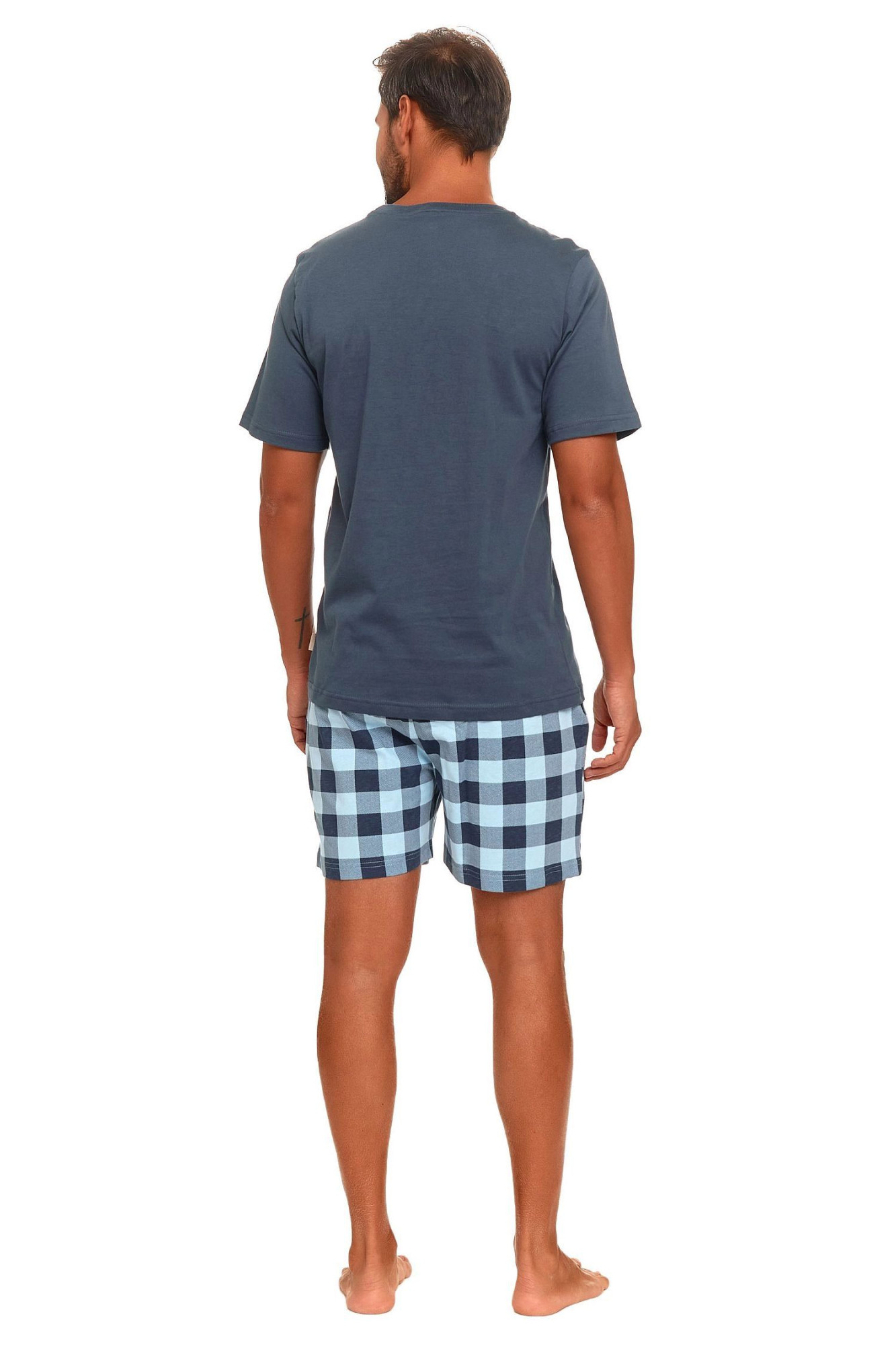 Pánske pyžamo 4416 plus Doctornap - vyrobené z kvalitnej a príjemnej bavlny - svetlomodré tričko s krátkym rukávom - potlač na prednej strane - kockované šortky s vreckami - certifikát OEKO-TEX Standard 100 Zloženie materiálu: 100% bavlna