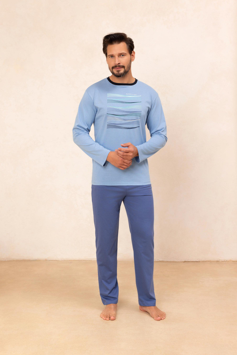 Pánske pyžamo 492 J/25 je klasika od spoločnosti Regina, navrhnutá pre maximálne pohodlie a jednoduchý, elegantný štýl.Tričko s dlhými rukávmi je vyrobené z vysokokvalitnej 100 % bavlny, má okrúhly výstrih a minimalistickú potlač na úrovni hrudníka.Súpravu dopĺňajú dlhé, pevné nohavice na pohodlné celonočné nosenie.Je ideálnou voľbou pre mužov, ktorí hľadajú klasické a kvalitné materiály v nočnom oblečení.