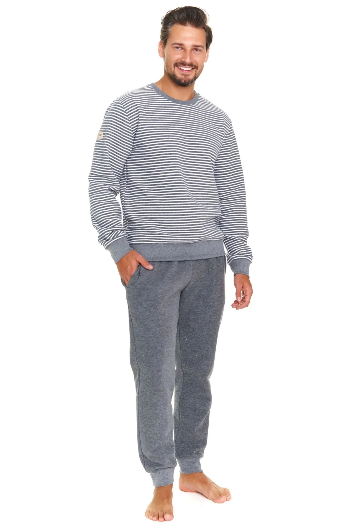 Pánske pyžamo 5248 tmavo šedé Doctornap - vyrobené z kvalitnej a príjemnej bavlny - sivé tričko s dlhými rukávmi - zdobené prúžkami - dlhé sivé nohavice s vreckami - materiálové zloženie trička: 80% bavlna + 20% polyester - certifikát OEKO-TEX Standard 100Zloženie materiálu: 100% bavlna