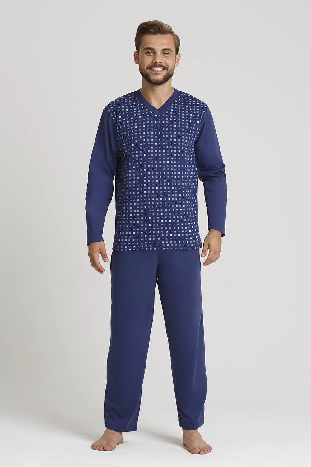 Pánske pyžamo - vzorované tričko s dlhými rukávmi - výstrih bez rukávov - nohavice s dlhými nohavicami - dostupné farby, náhodne vybrané: tmavomodrá, džínsy Zloženie: 100 % bavlna