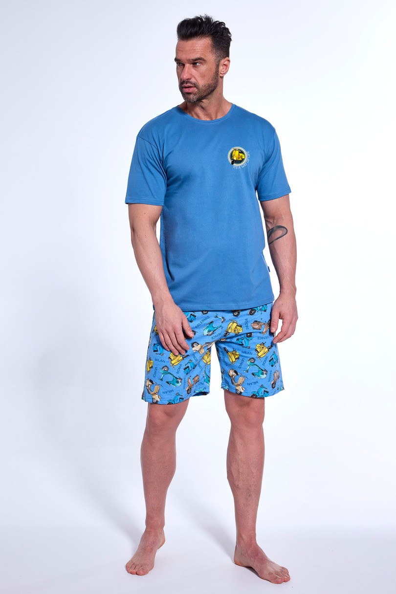 Pánske pyžamo Way of Life KR 326/172 je dokonalou kombináciou pohodlia a štýlu, je vyrobené zo 100 % vysokokvalitnej bavlny pre maximálne pohodlie a priedušnosť, ideálne na každú noc. Košeľa s krátkymi rukávmi má polkruhový výstrih a jemnú potlač na hrudi, čo pôsobí moderne a ležérne. Krátke vzorované šortky dobre ladia s jednoduchým vrchným dielom, zatiaľ čo elastický bavlnený pás zaručuje pohodlné nosenie.
