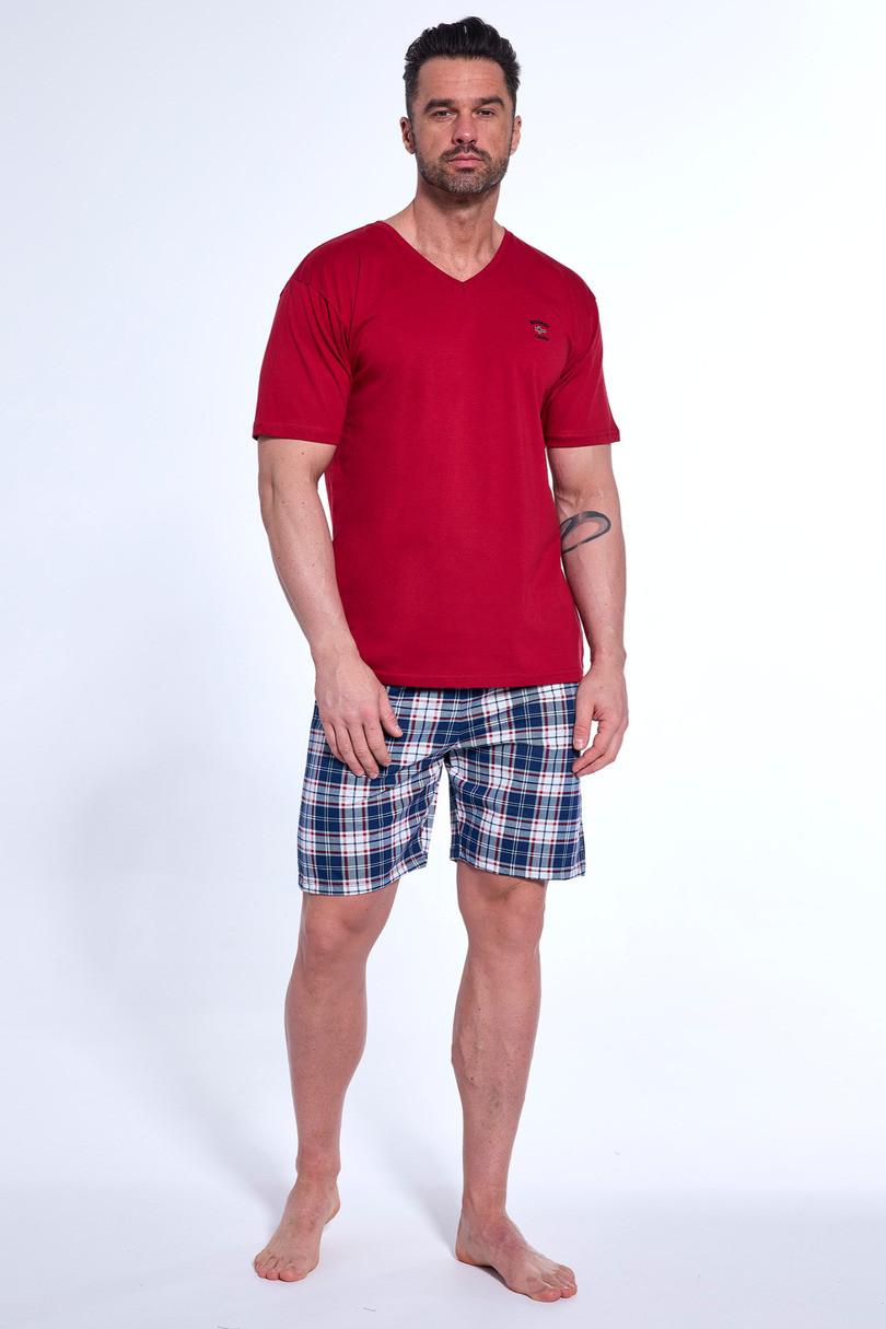 Pánske pyžamo z mäkkej kvalitnej bavlny. Tričko s krátkymi rukávmi, jemná potlač na hrudi. Krátke kárované šortky. Dodávané v krabici.Zloženie: tričko 100 % bavlna, šortky 80 % bavlna, 20 % polyester .