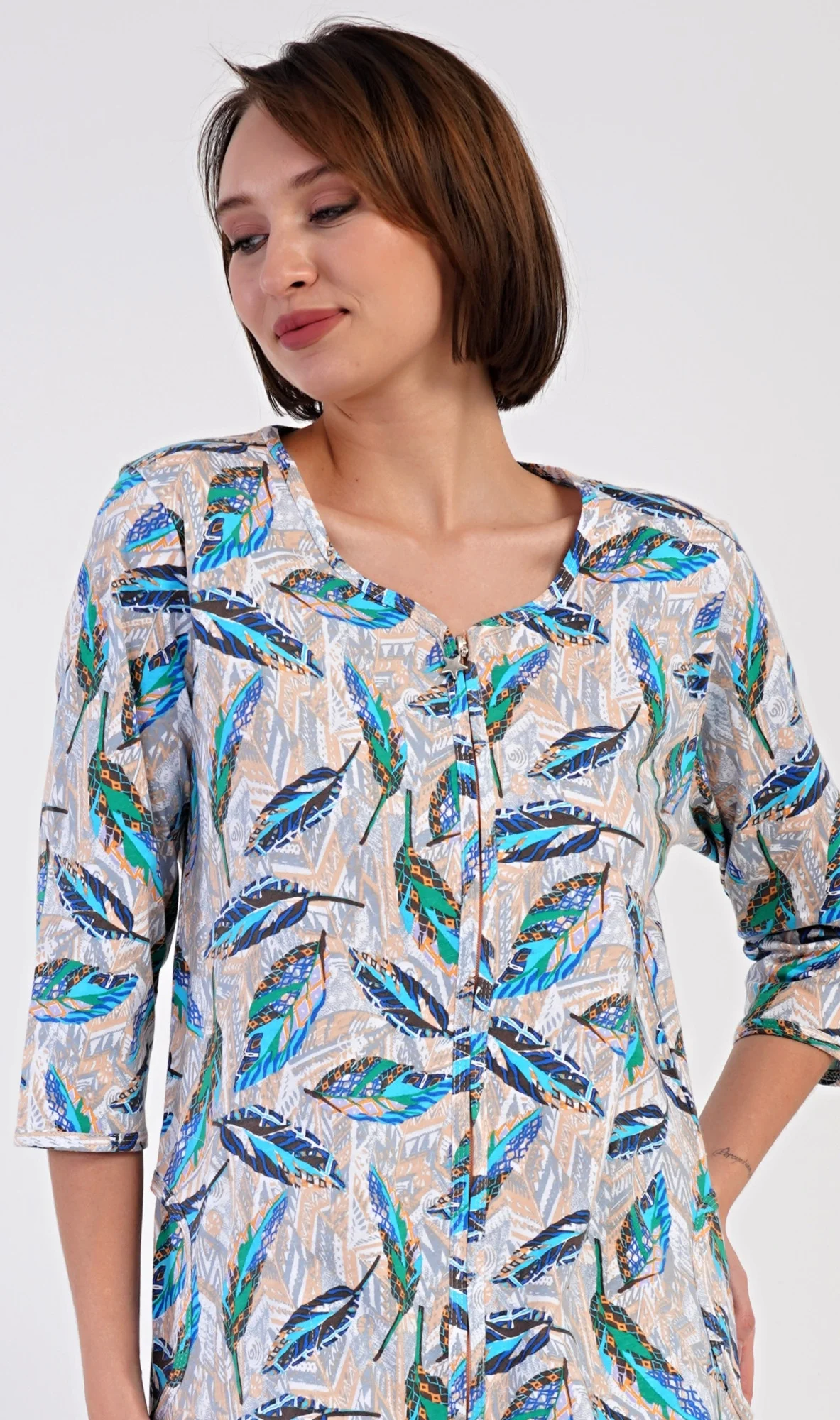 Dámské bavlněné domácí šaty s tříčtvrtečním rukávem Listy. Pohodlné rozepínací šaty v příjemné délce pod kolena využijete téměř při všech volnočasových aktivitách. Mají praktické kapsy a zapínání na zip. Šaty jsou potištěny větvičkami a listy. Použitý bavlněný materiál je příjemný a poddajný na dotek. Pokyny pro údržbu: - 100% bavlna- lze prát v pračce při teplotě do 30°- nesušit v sušičce- žehlit z rubu do 110°- nepoužívat bělící prostředky- nečistit chemicky Míry naměřené na výrobku: 4082168866 Listy M L XL XXL obvod hrudníku 94 100 104 108 obvod boky 106 112 116 120 délka 105 105 105 105