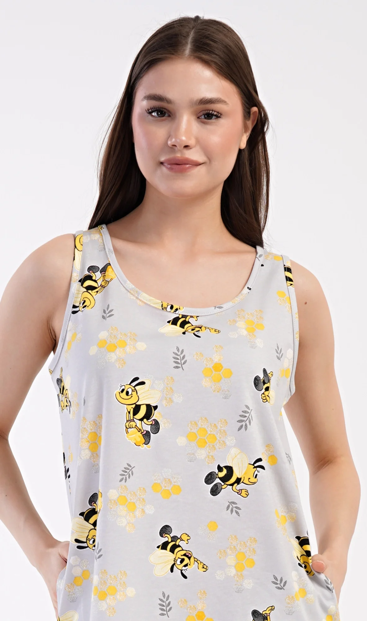 Dámská bavlněná noční košile na ramínka Včelky. Noční košile se širšími ramínky a kulatým výstřihem má praktické kapsy, je potištěna obrázky včelek. Použitý materiál s obsahem bavlny 100% je příjemný a poddajný na dotek. Košile je vhodná i na denní nošení, obvzlášť ji oceníte v horkých letních dnech. Pokyny pro údržbu: -100 % bavlna- lze prát v pračce při teplotě do 30°- nesušit v sušičce- žehlit z rubu do 110°- nepoužívat bělící prostředky- nečistit chemicky Míry naměřené na výrobku: 4082938401 Včelky S M L obvod hrudníku 88 94 98 obvod boky 100 104 108 délka 93 94 95
