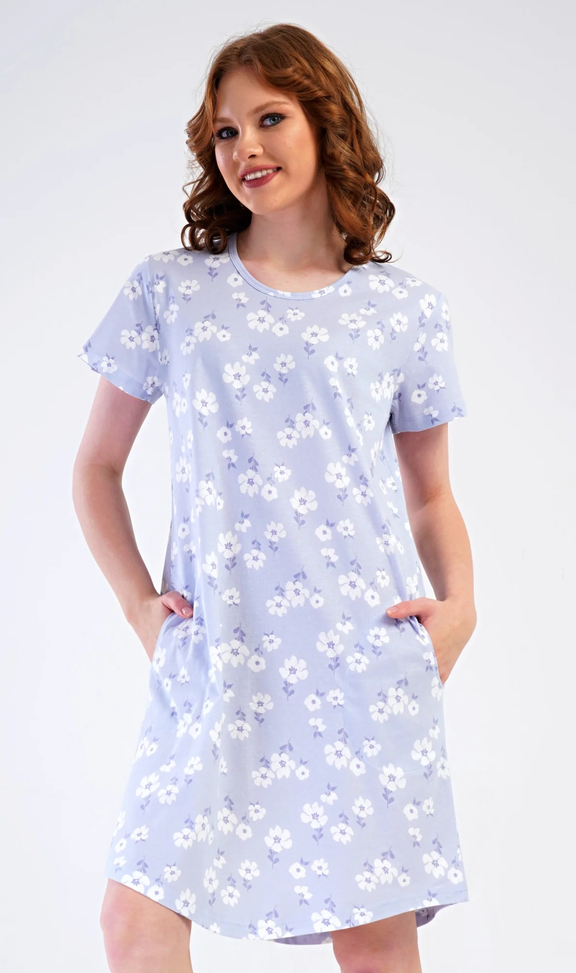 Dámské bavlněné domácí šaty s krátkým rukávem Nature lover. Domácí jednobarevné šaty s kulatým výstřihem a kapsami zdobí jemné bílé květy. Použitý bavlněný materiál je příjemný a poddajný na dotek. Šaty jsou pohodlné, vhodné na spaní i na denní nošení. Pokyny pro údržbu: -100 % bavlna- lze prát v pračce při teplotě do 30°- nesušit v sušičce- žehlit z rubu do 110°- nepoužívat bělící prostředky- nečistit chemicky Míry naměřené na výrobku: 4084840019 Nature lover 1XL 2XL 3XL 4XL obvod hrudníku 122 126 134 140 obvod boky 128 130 136 142 délka 98 99 100 -101