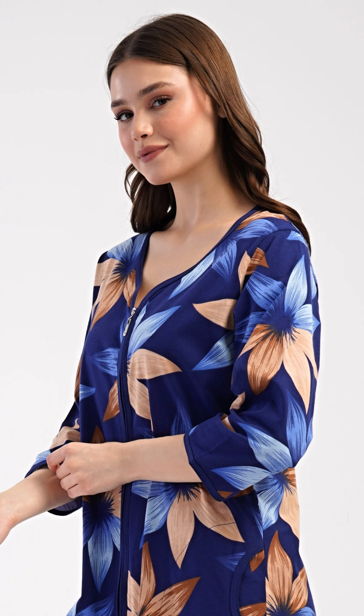 Dámské bavlněné domácí šaty s tříčtvrtečním rukávem Sára. Pohodlné rozepínací šaty v příjemné délce pod kolena využijete téměř při všech volnočasových aktivitách. Mají praktické kapsy a zapínání na zip. Šaty jsou potištěny květy. Použitý bavlněný materiál je příjemný a poddajný na dotek. Pokyny pro údržbu: - 100% bavlna,kalhoty 50% bavlna a 50% polyester- lze prát v pračce při teplotě do 30°- nesušit v sušičce- žehlit z rubu do 110°- nepoužívat bělící prostředky- nečistit chemicky Míry naměřené na výrobku: 4085019199 Sára 1XL 2XL 3XL 4XL obvod hrudníku 124 128 130 134 obvod boky 130 136 138 142 délka 100 100 100 100