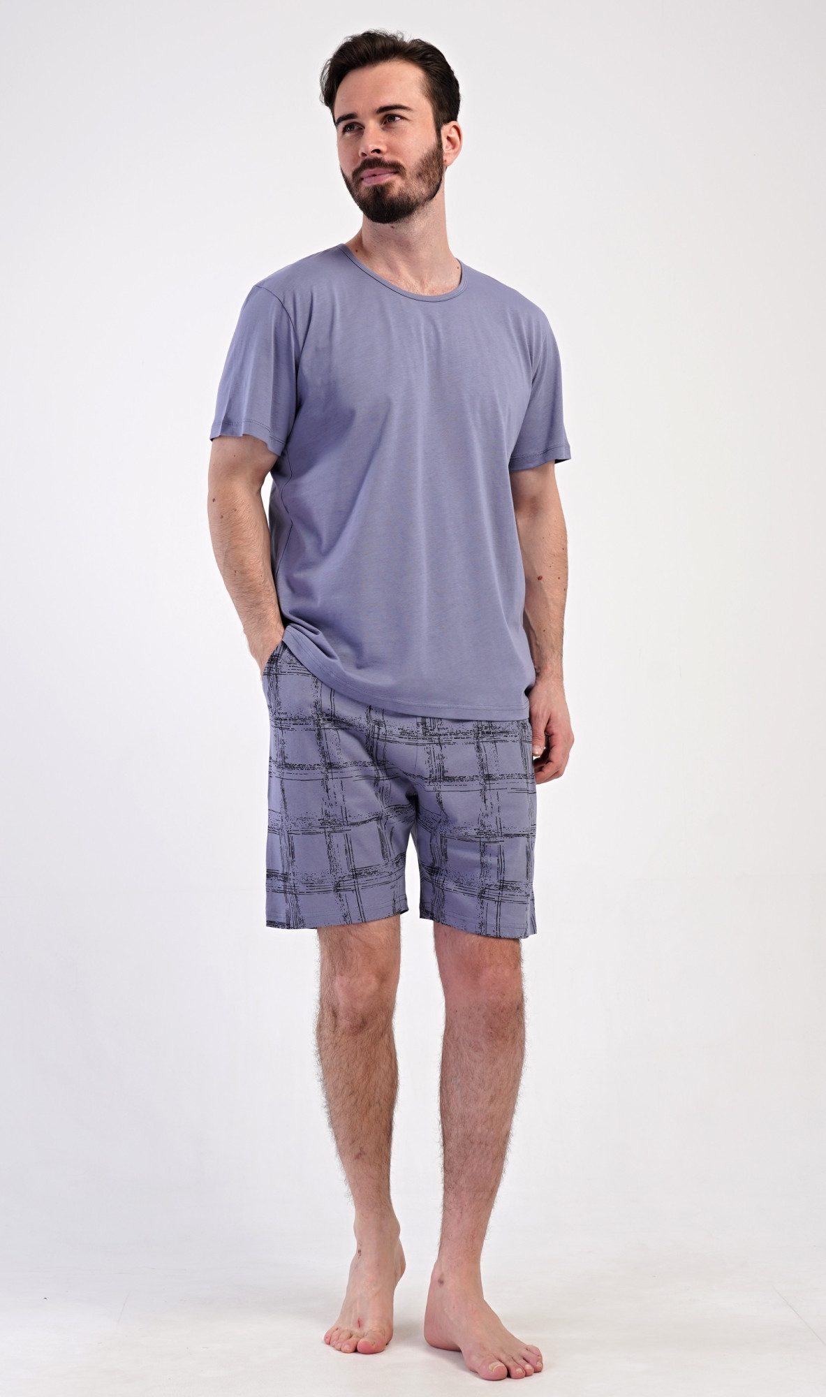 Pánské bavlněné šortkové pyžamo Jakub. Pánské pyžamo se skládá z trička s krátkým rukávem a krátkých šortkových kalhot. Jednobarevné tričko má kulatý výstřih a je vhodné pro všechny milovníky pohodlné módy bez potisku. Tričko doplňují kárované šortky, které mají v pase gumu, šňůrku na stažení a praktické kapsy. Použitý materiál s obsahem bavlny 100% je příjemný a poddajný na dotek. Pokyny pre udržbu: - 100% bavlna - možno prať v práčke pri teplote do 30° - nesušiť v sušičke - žehliť z rubu do 110° - nepoužívať bieliace prostriedky - nečistiť chemicky Míry naměřené na výrobku: 4100791356 Jakub M L XL XXL obvod hrudníku 104 100 114 118 délka trika 73 73 73 73 pas 80-92 84-96 88-100 92-104