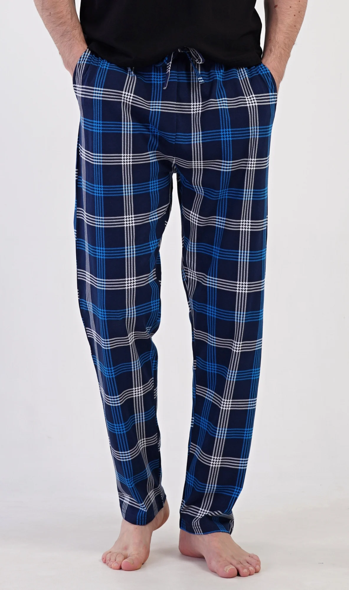 Pánské bavlněné pyžamové kalhoty Matěj. Kostkované kalhoty mají v pase gumu, šňůrku na stažení a praktické kapsy. Mateiriál s podílem bavlny 100% je příjemný a poddajný na dotek. Pokyny pro údržbu: - 100% bavlna- lze prát v pračce při teplotě do 30°- nesušit v sušičce- žehlit z rubu do 110°- nepoužívat bělící prostředky- nečistit chemicky Míry naměřené na výrobku: 4100760664 Matěj M L XL XXL pas 82-94 86-88 88-100 90-102 délka kalhot 107 108 109 110
