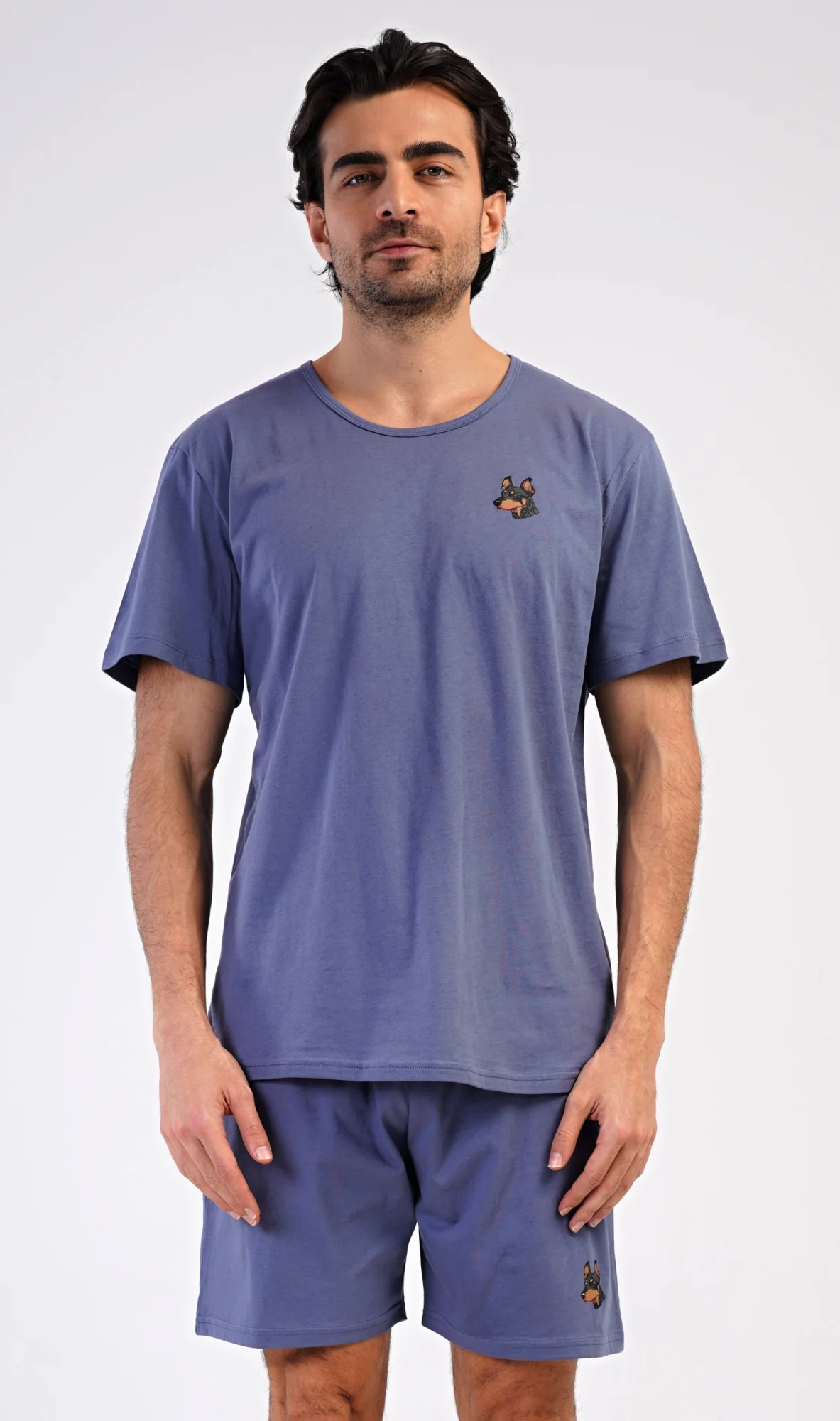 Pánské bavlněné šortkové pyžamo Pes. Pánské pyžamo se skládá z trička s krátkým rukávem a krátkých šortkových kalhot. Na jednobarevném tričku je obrázek psa, tento obrázek se opakuje i na šortkách, které mají praktické kapsy, v pase gumu a šňůrku na stáhnutí. Použitý materiál s podílem bavlny 100% je příjemný a poddaný na dotek. Pyžamo oceníte obzvlášť v horkých letních dnech. Pokyny pro údržbu: - 100% bavlna- lze prát v pračce při teplotě do 30°- nesušit v sušičce- žehlit z rubu do 110°- nepoužívat bělící prostředky- nečistit chemicky Míry naměřené na výrobku: 4084350000 Pes M L XL XXL obvod hrudníku 104 110 116 120 délka trika 70 70 71 73 pas 80-92 82-94 88-100 90-102