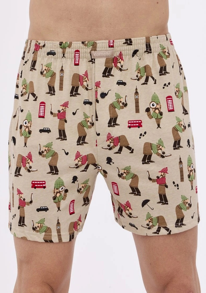 Bavlnené šortky voľného strihu s veselým motívom od značky Cornette. Šortky majú elastický pás s nášivkou Cornette na prednej strane a zapínanie na gombíky. Materiál: 100 % bavlna.