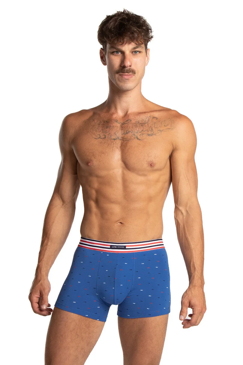 LAMA M-1066 sú pánske boxerky, ktoré spájajú klasiku s moderným športovým vzhľadom. Sú vyrobené z vysokokvalitného úpletu - 95 % bavlny a 5 % elastanu - a ponúkajú vynikajúcu pružnosť, priedušnosť a odolnosť. Materiál sa dokonale prispôsobí telu a ploché švy eliminujú riziko podráždenia. Výrazný pás s logom "LAMA DESIGN" a trojfarebným lemovaním dodáva spodnej bielizni charakter. Elastický pás udržiava boxerky na mieste bez tlaku, čo zaručuje pohodlie počas celého dňa - v práci aj pri fyzickej aktivite.