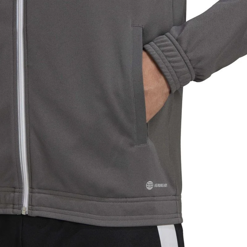 Właściwości:męska bluza adidaszapinana na zamekposiada wyższą stójkękieszenie boczneściągacze przy rękawach i dole bluzyMateriał:syntetycznyKolor:szary