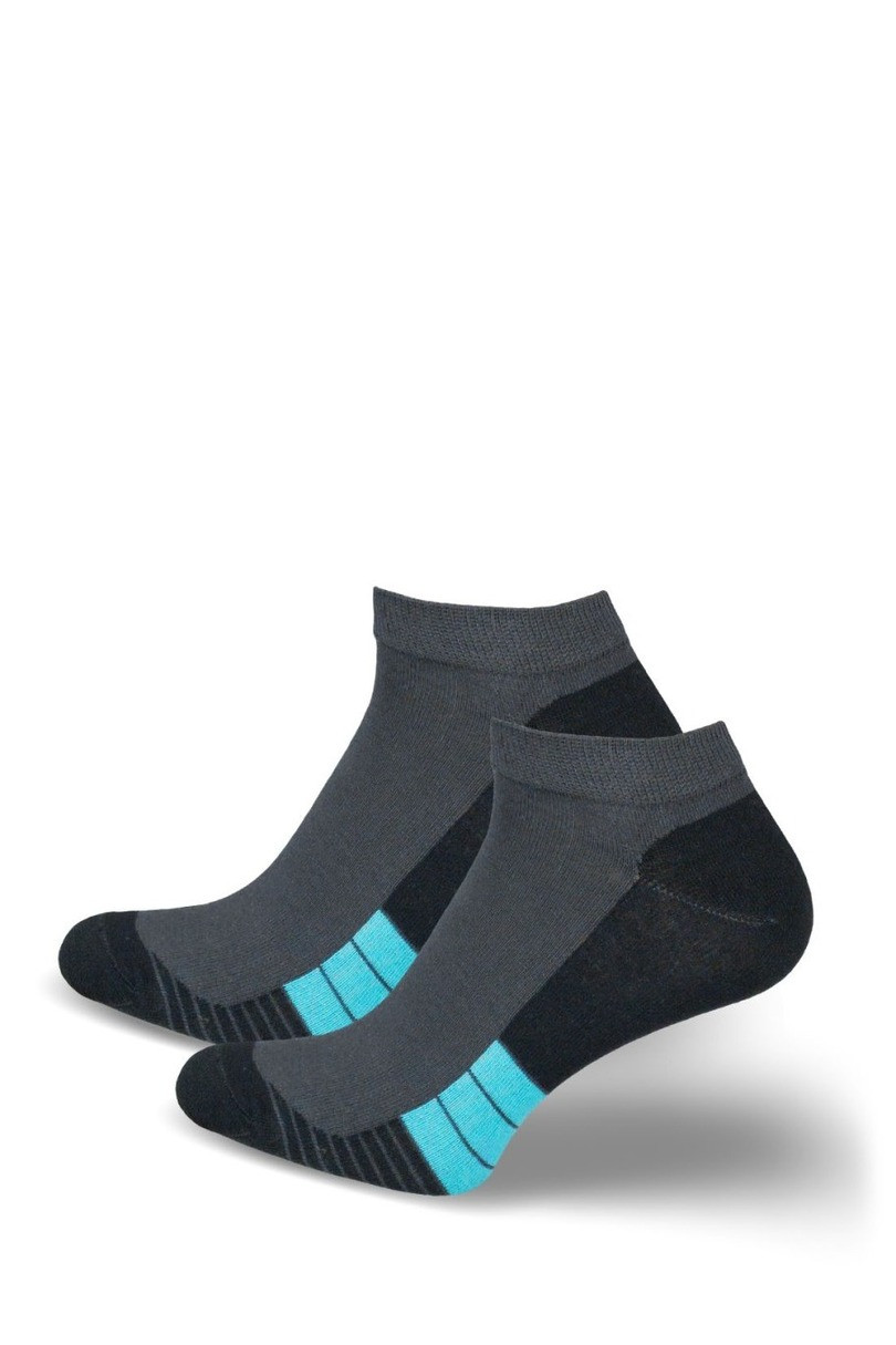Pánske športové ponožky 0170.023 značky MILENA sú kombináciou moderného dizajnu a najvyššieho pohodlia pri nosení. Sú vyrobené z mäkkej, vzdušnej bavlny s polyamidom a elastanom, dokonale priliehajú k nohe a zaisťujú voľnosť pohybu a optimálnu cirkuláciu vzduchu. Vzorovaný vzhľad im dodáva športový charakter a nízky strih z nich robí ideálnu voľbu pre športovú a voľnočasovú obuv. Materiál je odolný voči pokrčeniu a roztiahnutiu a zaručuje dlhú životnosť aj pri intenzívnom používaní.