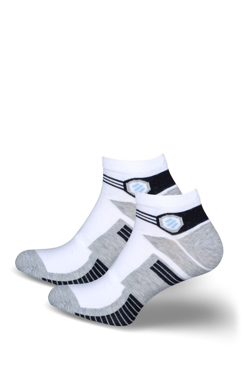 Pánske športové ponožky MILENA 0170.027 vyrobené zo vzdušnej bavlny s polyamidom a elastanom sú dokonalou kombináciou pohodlia, funkčnosti a módneho dizajnu. Sú vyrobené zo vzdušnej bavlny s polyamidom a elastanom a poskytujú dokonalé prispôsobenie sa nohe, pružnosť a voľnosť pohybu. Vďaka nízkemu strihu sa výborne hodia k športovej a bežnej obuvi a vzorovaný dizajn im dodáva moderný, dynamický charakter. Sú odolné voči pokrčeniu a roztiahnutiu, zachovávajú si svoj tvar a vzhľad aj po mnohých praniach. Sú praktickou voľbou pre aktívnych mužov, ktorí ocenia každodenné pohodlie.