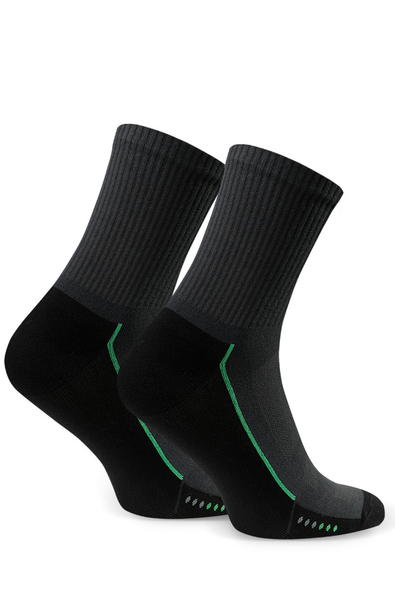 Pánske športové ponožky so širokým a dlhým sťahovacím lemom.Ponožky sú k dostaniu v mnohých vzoroch a farebných variantoch.Zloženie: 67% Bavlna, 27% polyamid, 4% Elastan, 2% polypropilén