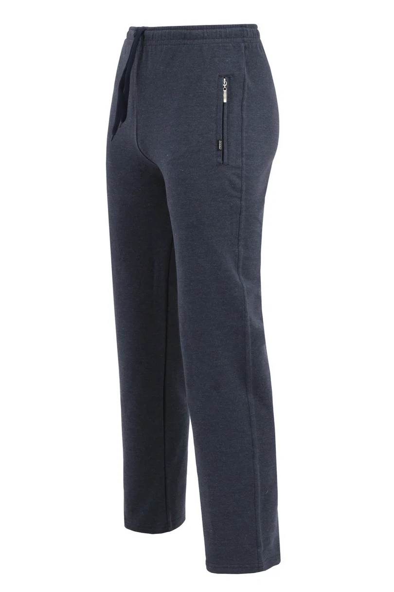 Pánske tepláky s rovnými nohavicami. Vrecká na zips. Zloženie: čierna, tmavo modrá: 95% bavlna, 5% elastan. Šedá žíhané: 80% bavlna, 15% polyester, 5% elastan. Tmavo modrá žíhaná, tmavo šedá žíhaná: 50% bavlna, 45% polyester, 5% elastan.