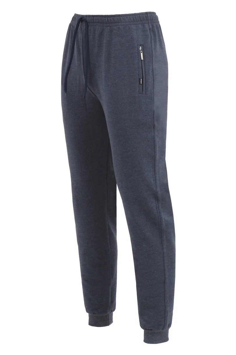 Pánske tepláky. Na nohaviciach sú pružné lemy. Vrecká na zips. Zloženie: čierna, tmavo modrá: 95% bavlna, 5% elastan. Šedá žíhané: 80% bavlna, 15% polyester, 5% elastan. Tmavo modrá žíhaná, tmavo šedá žíhaná: 50% bavlna, 45% polyester, 5% elastan.