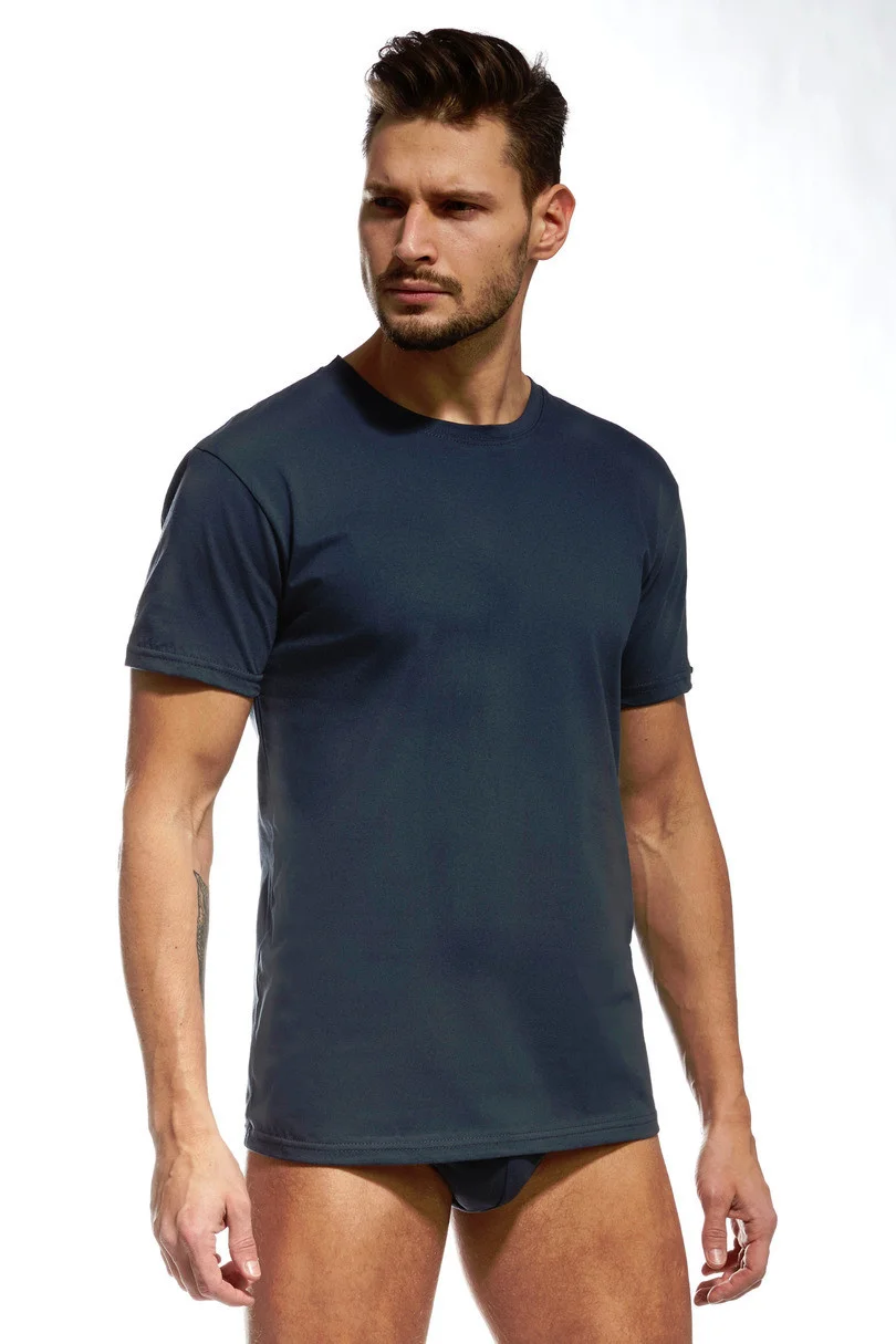 Pánske tričko s krátkymi obopnutými rukávmi. Má pologuľatý výstrih a je ušité z kvalitnej 100% bavlny. Na rukáve je kovové logo Cornette.