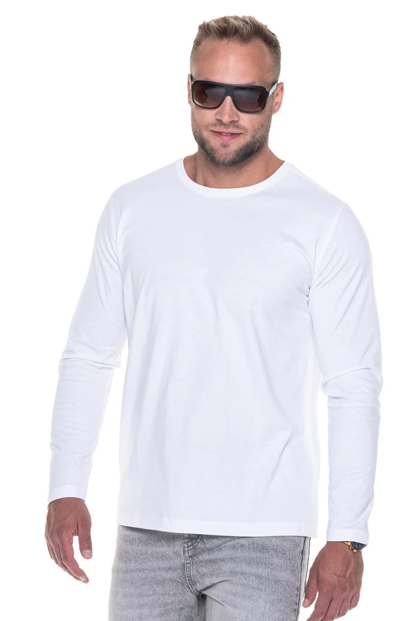 Pánske tričko s dlhými rukávmi, ktoré je vyrobené z tkaniny "single jersey". Tričko má klasický strih a je vyrobené zo špeciálne upraveného materiálu (enzymaticky praného), ktorý je zbavený nerovností. Vďaka silikónovej úprave je tričko mäkké a príjemné na dotyk. Výstrih je olemovaný dvojvrstvovým sťahovacím lemom s elastanom, a preto je odolnejší a má dlhšiu životnosť. Spevňujúca páska na krku má kontrastnú farbu. Na ramenách je spevňujúca a stabilizujúca páska, ktorá pozitívne ovplyvňuje životnosť švov. Tričko má bočné švy. Dvojité husté švy sú zhotovené z najkvalitnejších nití. Gramáž: 175 g/m2. Zloženie: 100% bavlna "ring-spun"; šedá melanžová farba - 90% bavlna, 10% viskóza.