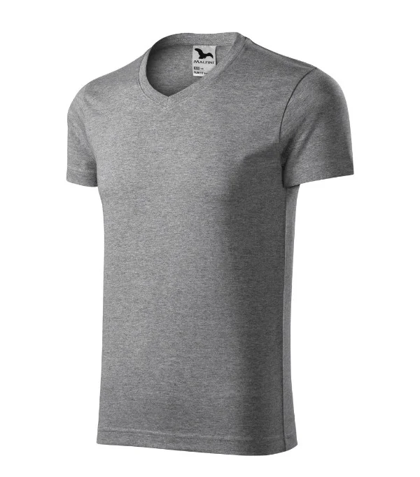 Pánske tričko Slim Fit s výstrihom do V tmavo šedá modrá L