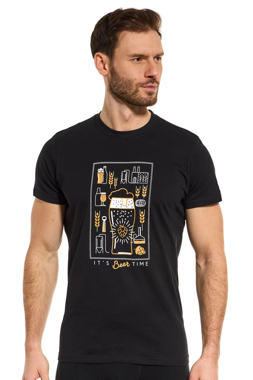 Toto pánske tričko s krátkym rukávom a potlačou nesmie chýbať v šatníku žiadneho muža. Je vyrobené zo 100 % kvalitnej bavlny a zaručuje celodenné pohodlie. Mäkký materiál poskytuje vynikajúcu priedušnosť, je ideálny na teplejšie dni, ako aj na vrstvenie počas chladnejších dní. Polkruhový výstrih zakončený elastickou šnúrkou zaručuje pohodlné nosenie bez pocitu zvierania. Originálna potlač dodáva tričku charakter a umožňuje vyjadriť váš štýl. Je ideálnou voľbou pre mužov, ktorí ocenia pohodlie, kvalitu a módny vzhľad na každý deň.
