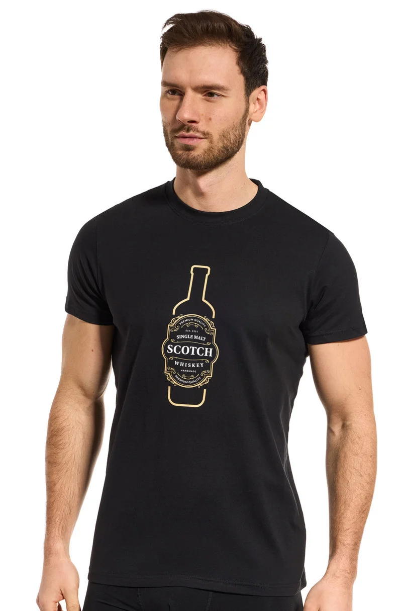 Toto pánske tričko s krátkym rukávom a potlačou nesmie chýbať v šatníku žiadneho muža. Je vyrobené zo 100 % kvalitnej bavlny a zaručuje pohodlie počas celého dňa. Mäkký materiál zaručuje vynikajúcu priedušnosť, čo je ideálne počas teplejších dní aj pod vrstvy v chladnejších dňoch. Okrúhly výstrih zakončený elastickou šnúrkou zaručuje pohodlné nosenie bez pocitu tlaku. Originálna potlač dodáva tričku charakter a umožňuje vyjadriť váš štýl. Je ideálnou voľbou pre mužov, ktorí ocenia pohodlie, kvalitu a módny každodenný vzhľad..