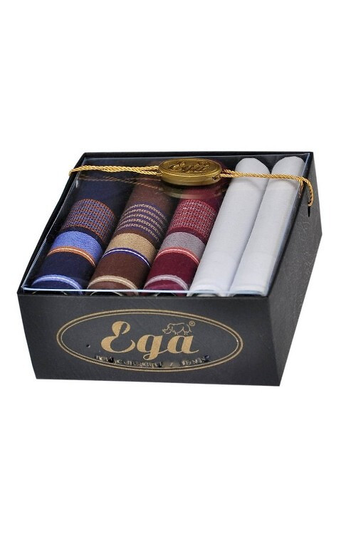 Pánske vreckovky - vyrobené z hladkej, jemne tkanej bavlny - podšité úzkym plochým švom - balené po päť kusov v elegantnej škatuľke - veľkosť 40x40 cm - náhodne vybrané dostupné farby: modrá, ružová, biela, tmavomodrá, bordová, béžová Zloženie: 100 % bavlna