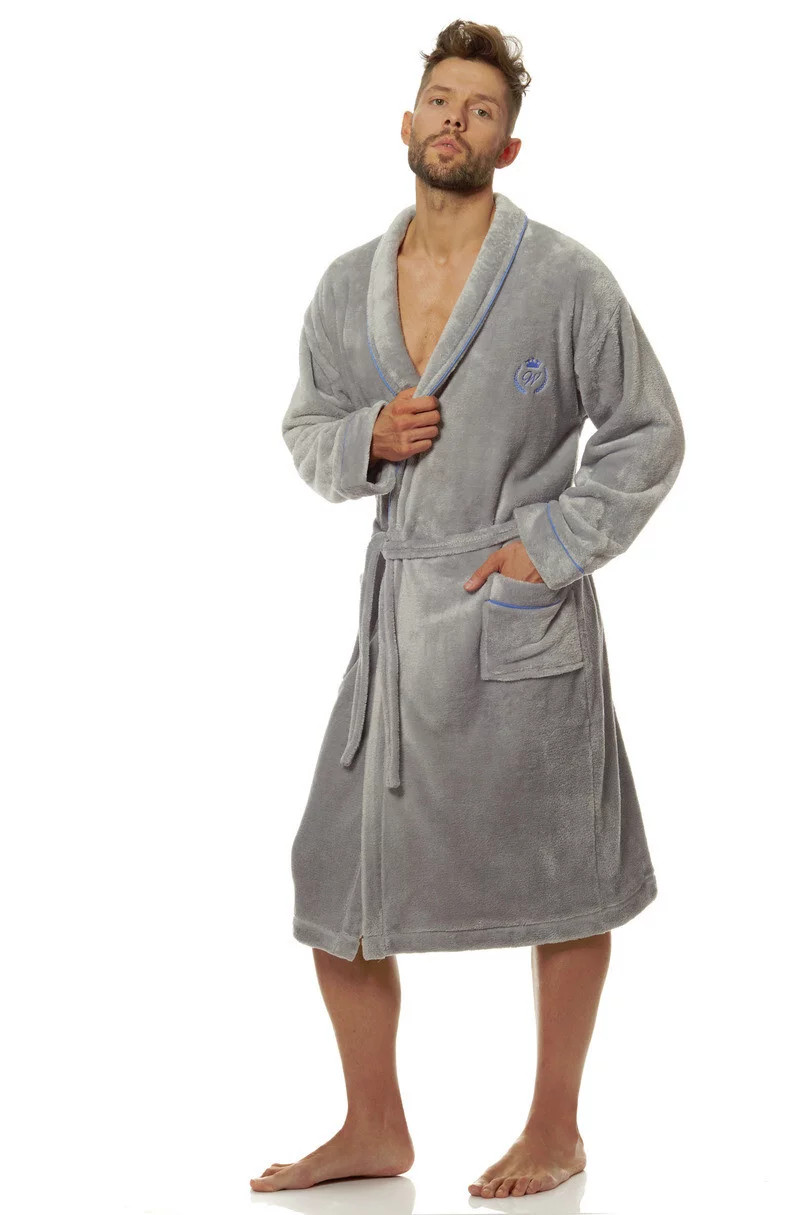 Klasický pánsky župan, ktorý je vyrobený z mäkkej a príjemnej tkaniny. Šálový golier je lemovaný lemom v kontrastnej farbe. Na hrudi je ozdobná výšivka. Župan má pohodlné vrecká na bokoch a zaväzuje sa v páse. Materiál: 100 % polyester.