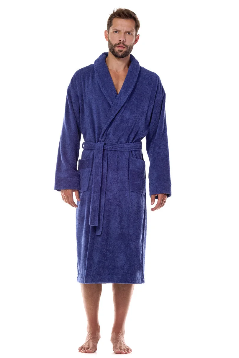 Klasický pánsky župan s golierom z froté bavlny, zaväzuje sa v páse a má vrecká na úrovni bokov.Zloženie .