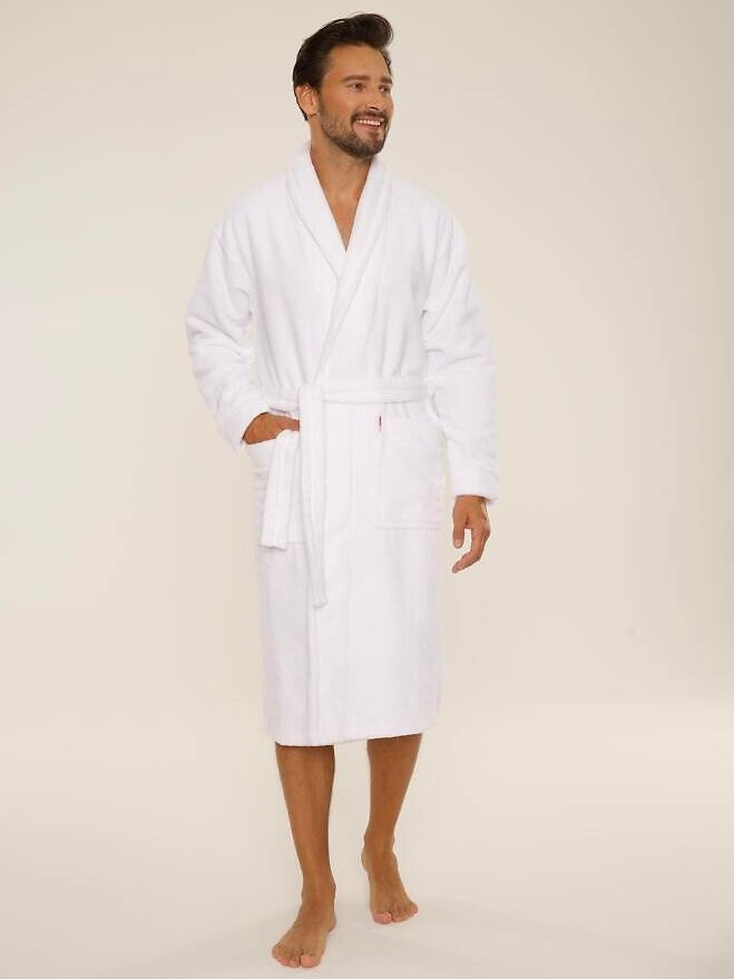 Dlhý pánsky župan - so šálovým golierom - zaväzuje sa v páse - s vreckami na bokoch a jedným na hrudi - príjemné na dotyk froté - perfektná absorpcia vody Zloženie: 50% bavlna, 50% polyamid