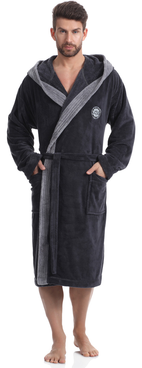 Pánsky župan, ktorý je vyrobený z tkaniny typu "soft". Župan má kapucňu a zaväzuje sa v páse. Na hrudníku je našitá aplikácia. Zloženie: 100% polyester.