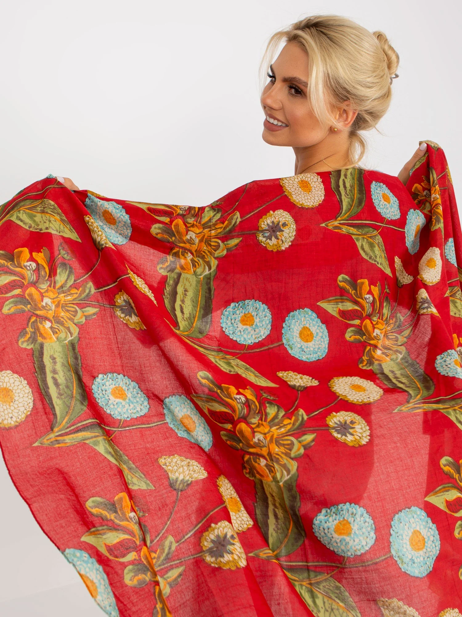 Červená kvetinová bavlnená šatka . Kód produktu: AT-PO-75103.68dominantný vzor: kvetyrozmery: dĺžka približne 180 cm, šírka približne 106 cm