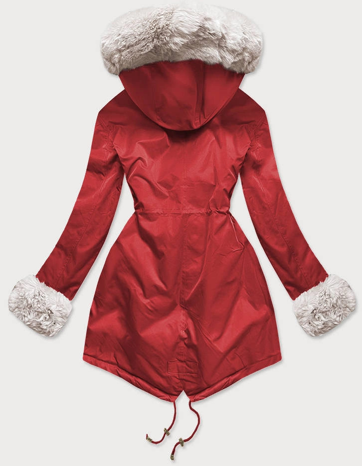 Červeno-ružová dámska zimná bunda s podšívkou z machovej kožušiny (b530-4046) odstíny červené XL (42)