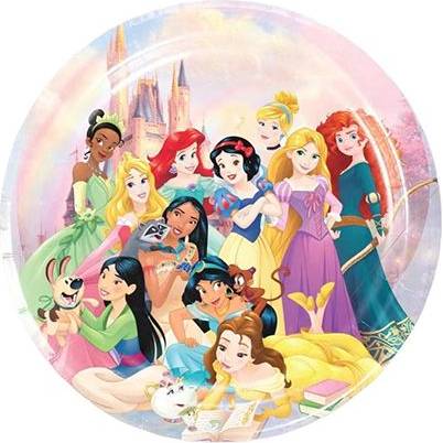 Párty papierové tanier s motívom princeznej. V balení 10 ks, priemer 22 cm.