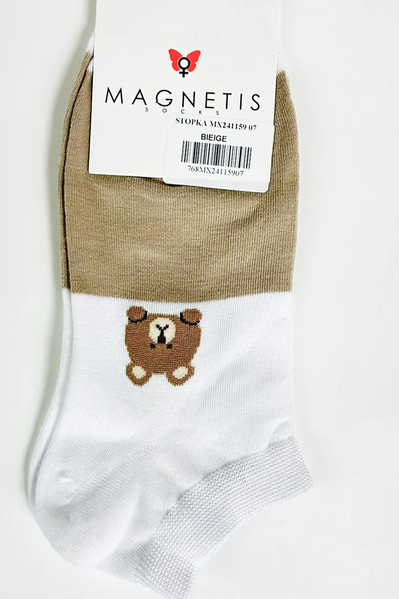 Topánky MAGNETIS MX241159 07 sú očarujúcim doplnkom vášho každodenného šatníka. Sú vyrobené z kvalitnej bavlny (92 %) s elastanom (8 %), poskytujú výnimočné pohodlie, priedušnosť a dokonale priliehajú k nohe. Béžovo-biele farebné prevedenie a vyšívaný vzor medvedíka dodávajú jemný šarm, ideálny na ležérny štýl. Perfektne sa hodia na každodenné nosenie, hodia sa k teniskám, teniskám a mokasínam..