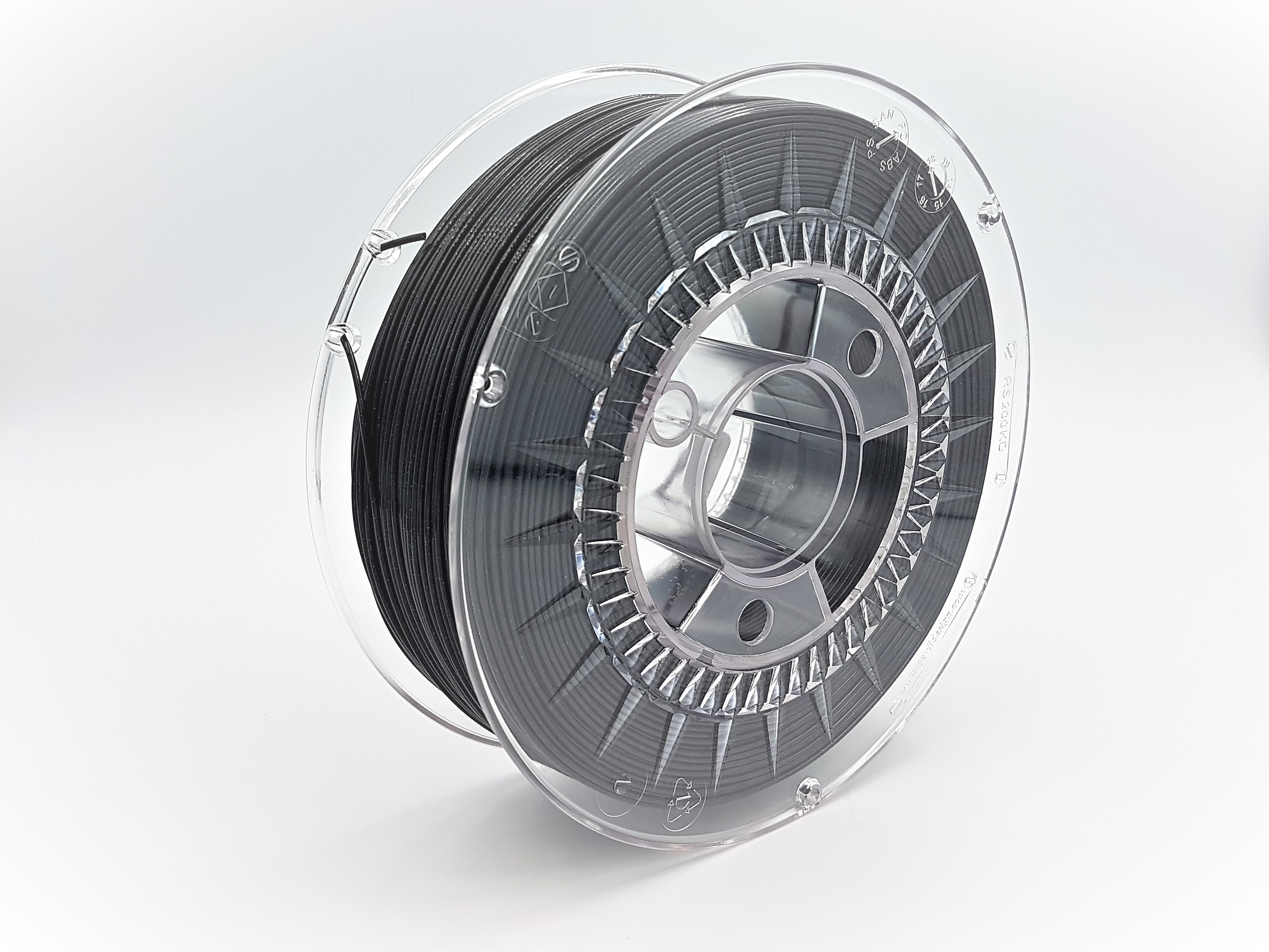 PET-G Galaxy BLACK je čierny filament s trblietkami od Devil Design. Jedná sa o pevný a húževnatý materiál, ktorý sa vyznačuje dobrou teplotnou stálosťou. Tento materiál vďaka malému zmršteniu pri tlači je vhodný pre tlač veľkých objektov. PETG je na rozdiel od iných materiálu viac odolný voči kyselinám a rozpúšťadlám, vysokým i nízkym teplotám. Je možné tepelne tvarovať z neho vytlačený predmet alebo ho leštiť ohňom.
