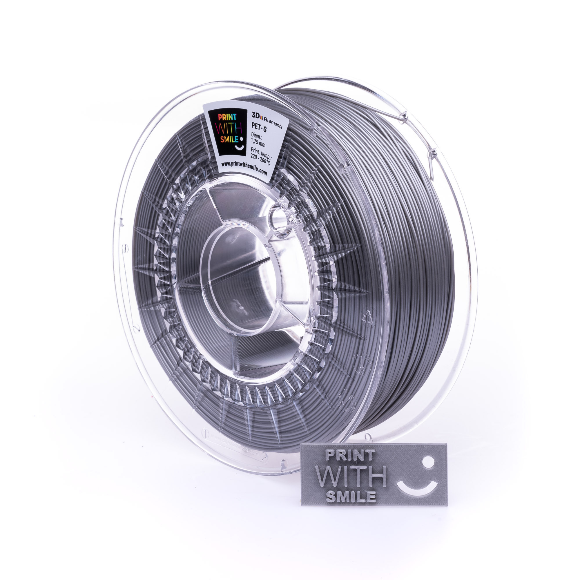 Modifikovaný polyethylentereftalátglykolem - PET-G je amorfní termoplastický kopolyester, který je oblíbený pro své skvělé pevnostní a optické vlastnosti. Filament PET-G je vhodný především pro profesionální 3D výtlačy s technologií FDM. Je pružnější a měkčí než PLA nebo ABS filamenty. Má velmi malé smrštění a výbornou přilnavost vrstev, díky čemuž je vhodný pro velkoplošné 3D tlačy.  PET-G je vysoce chemicky odolný vůči kyselinám a během tlaču nevydává žádný nepříjemný zápach. I proto je 3D tlač pomocí PET-G Smile tak příjemný! Další nespornou výhodou tohoto filamentu je jeho recyklovatelnost.